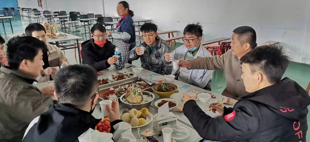 爆竹聲中一歲除,春風送暖入屠蘇。2022年1月31日除夕,當萬家開始團圓共享天倫,為除夕夜過年忙碌時,佰奧公司部分干部員工為保證公司項目順利進行,依然堅守在自己的工作崗位上。同時非昆籍的員工為了響應政府留昆過年的號召,春節期間不回老家過年,為大家舍小家,為抗疫貢獻力量。中午時分,佰奧董事長兼總經理肖朝蓬先生專門來到公司食堂,與在崗員工一起守歲,共進午餐,恭賀新春。