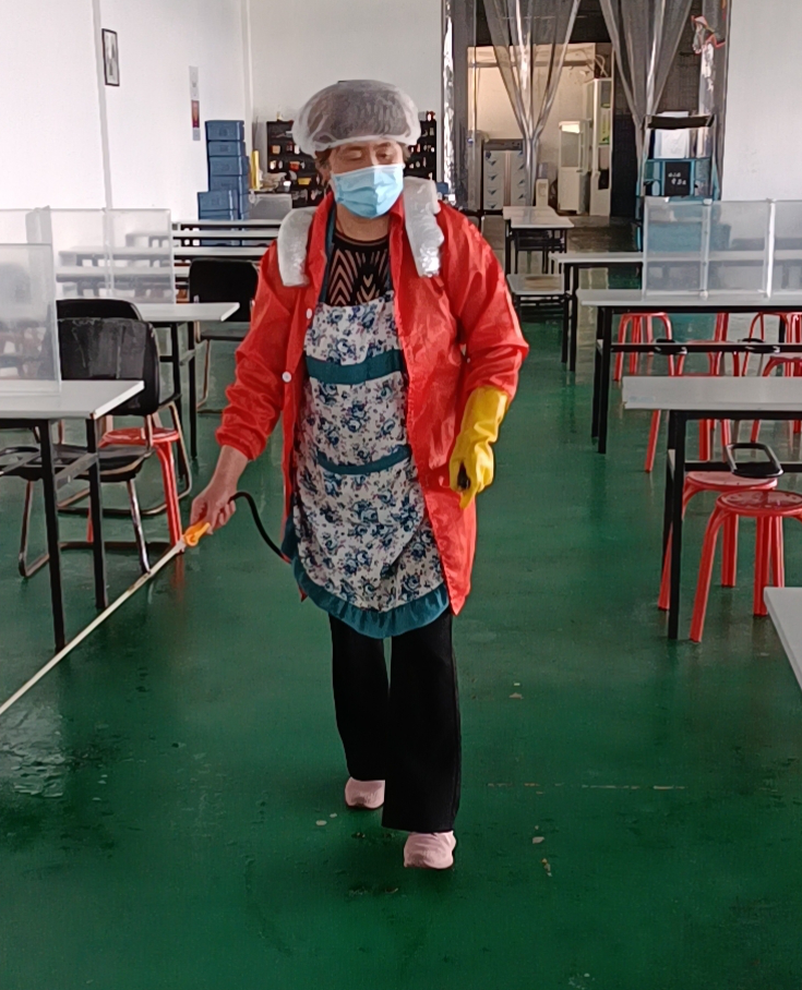 疫情當下,雖然阻隔了距離,但阻斷不了關愛和守護。為了配合政府防疫工作,公司總務部的后勤工作人員,舍小家,為大家,廚房盧成學,彭秀菊,王金菊和司機李德歲住在廠里,給宿舍隔離人員和閉環工作的職工們備餐送餐,并為廠區打掃衛生,進行全廠消殺,保證公司的安全運行,默默堅守抗疫的后防線。