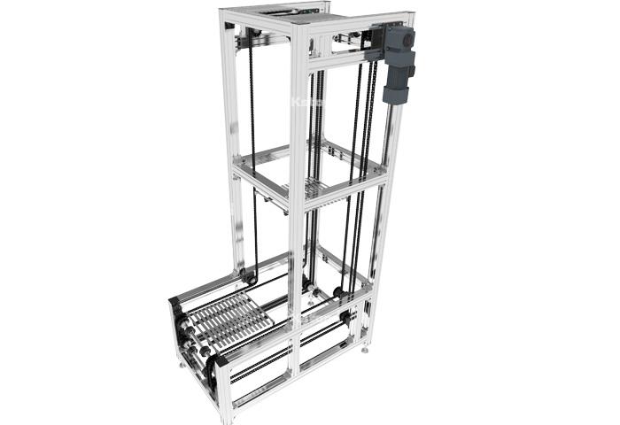 優點: 該設備垂直提升機工作時擱板的回程不占用工作節拍,輸送效率高,且不受輸送高速的影響;承載范圍大,同時能滿足多種尺寸需求的輸送任務;使輸送過程實現全自動。